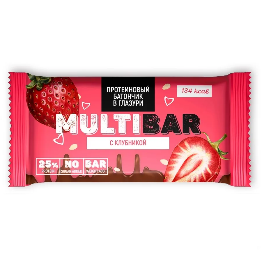 Батончик протеиновый в глазури с повышенным содержанием белка без сахара от Multibar, 40 гр (с клубникой)