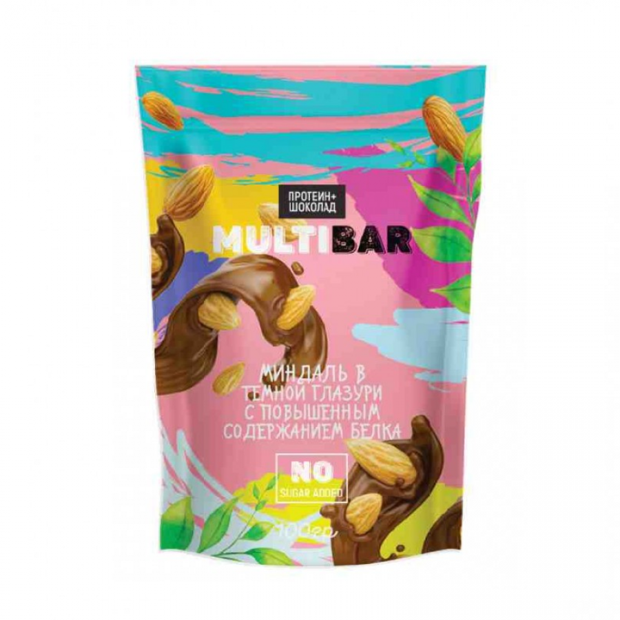 Драже миндаль в темной глазури с повышенным содержанием белка от Multibar, 100 гр