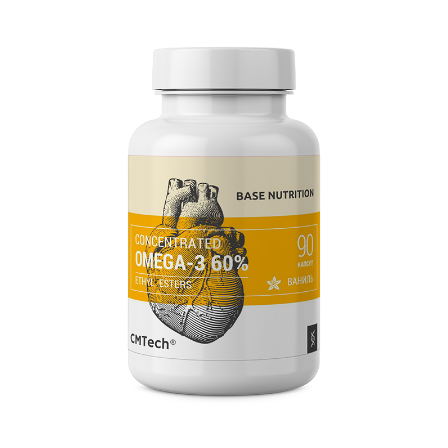 CMTech Omega 3 60% - очищенный рыбий жир в капсулах с наивысшей концентрацией полиненасыщенных жирных кислот EPA и DHA. Концентрат содержит в себе в 3,5 раза больше ПНЖК чем обычный рыбий жир, не подвергнутый очистке. Этаноловая этерификация и высокая очистка позволили повысить концентрацию Омега 3 свыше 250%, сравнительно со стандартным рыбьим жиром и приблизительно на 70% сравнительно с Омега 3 35%.